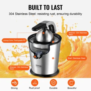SucceBuy Electric Citrus Juicer Orange Juice Squeezer with Two Size Juicing Cones 300W Stainless Steel Orange Juice Maker